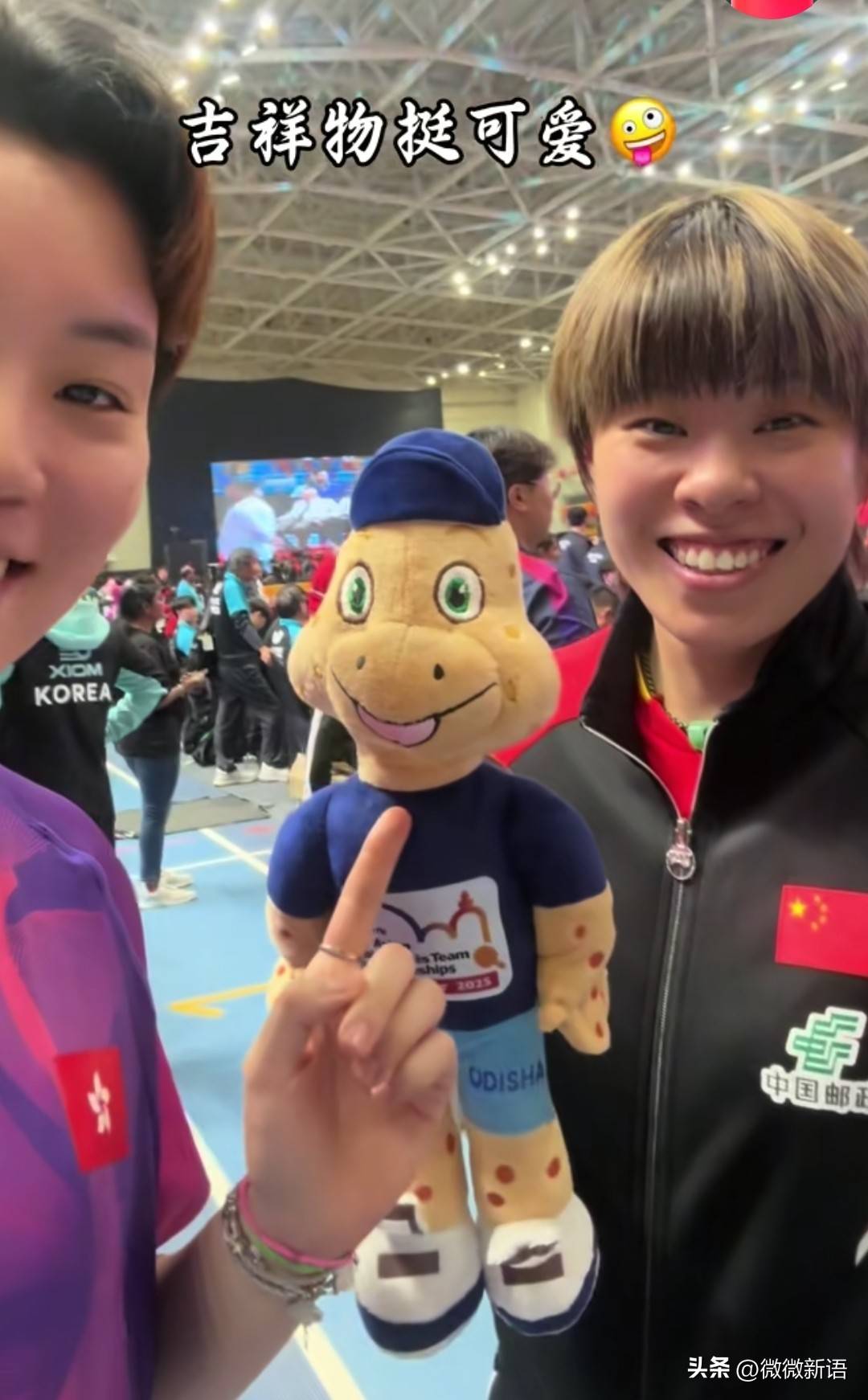 看到杜凯琹也更新了动态,这次港队男团夺得亚军,杜姐也分享了男队的合照,当然每次和大迪在一块儿,俩人都会一起拍照,阿杜还让大迪拿着吉祥物一起合影了,后面还借了大迪的吉祥物和港队女团一起合影,她俩一直都是很好很好的朋友,主要这次比赛是在印度,要不然俩人肯定得约着出去玩。