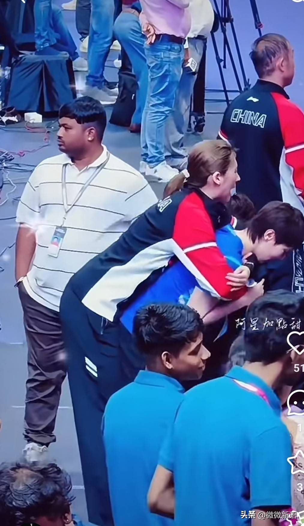 今天还看到很多现场的小花絮,昨天比赛结束后,王曼昱走出来,陈熠过去抱了一下王曼昱,没想到王曼昱把陈熠给背起来了,这力气真大啊,王曼昱也很宠陈熠。这一站陈熠是来陪练了,看了一下下一站的冠军赛,陈熠也有参赛,比赛加油哦!国乒住里面回来也休息不了几天,月底还有冠军赛,冠军赛结束就是全运会了,孩子们都没时间休息。