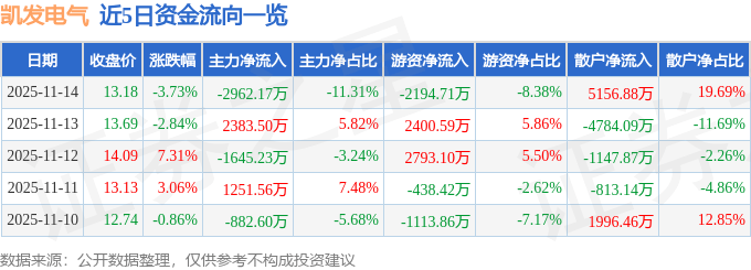 凯发国际,凯发国际登录,凯发国际官网,凯发国际娱乐,凯发国际注册,凯发娱乐K8,尊龙凯时证券之星消息,截至2025年11月14日收盘,凯发电气(300407)报收于13.18元,下跌3.73%,换手率8.13%,成交量19.68万手,成交额2.62亿元。