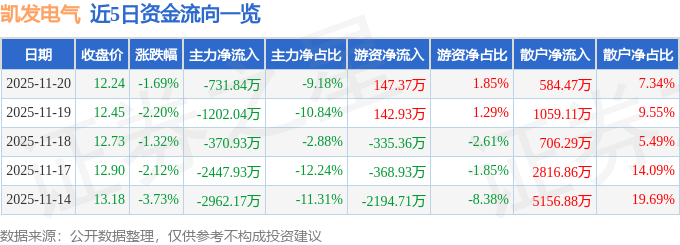 凯发国际,凯发国际登录,凯发国际官网,凯发国际娱乐,凯发国际注册,凯发娱乐K8,尊龙凯时证券之星消息,截至2025年11月20日收盘,凯发电气(300407)报收于12.24元,下跌1.69%,换手率2.68%,成交量6.48万手,成交额7968.21万元。