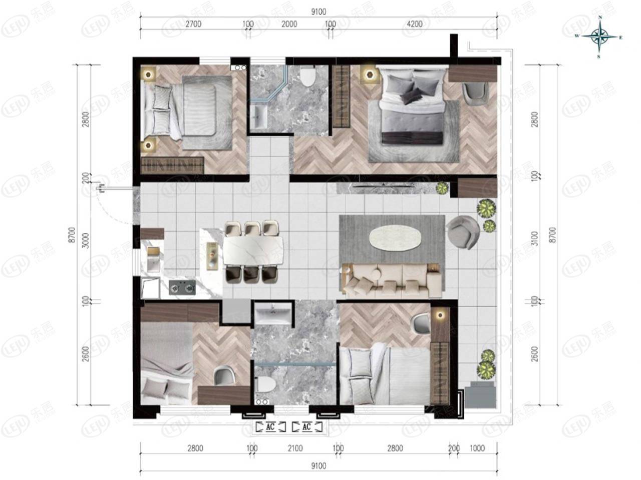昊冠天禧本身主打小户型,户型设计有面积为55-100㎡两至四房,户户通风采光俱佳,户型方正实用,无浪费空间得房率高。