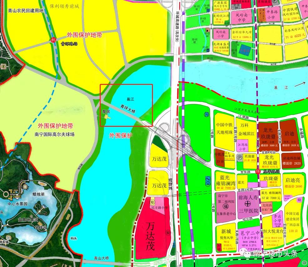 外部邕江环绕,三面瞰江,又有邕宁区人民法院、人民检察院、政务中心等机关单位入驻。