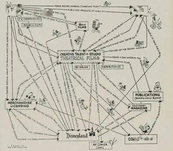在迪士尼的计划中,院线电影是一切的核心。围绕着优秀的电影IP,才能衍生出电视剧、音乐、漫画、杂志、乐园、消费品授权等等一系列生意。