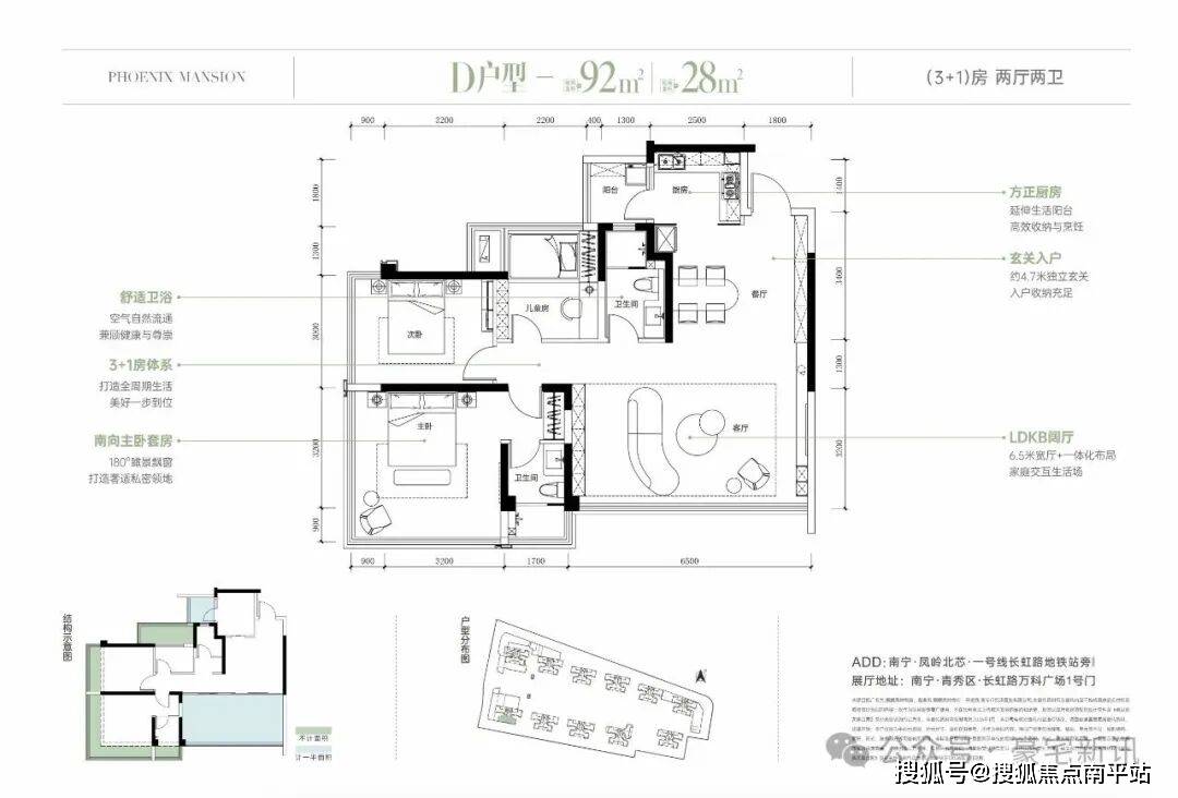 ▋明星户型:建筑面积约92㎡ 3+1房两厅两卫 可拓展面积约28平米 得房率约116%