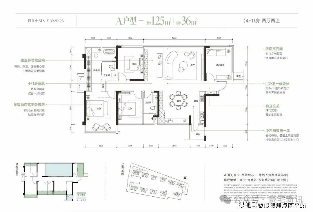 ▋金牌户型:建筑面积约125㎡ 4+1房两厅两卫 可拓展面积约36平米 得房率约115%