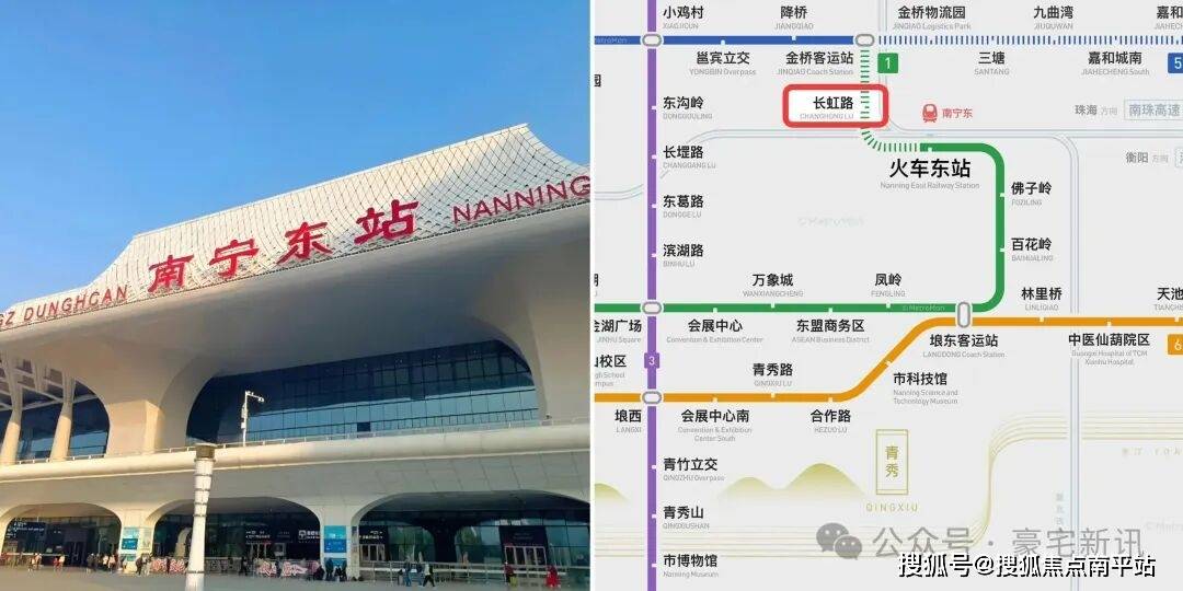 项目处于南宁东站圈,毗邻地铁 1 号线延长线(长虹路站),长虹路BRT(长虹路翠竹路口东站、长虹路凤凰岭路口站)从家门前过,公交站(9 路合坡红光路口)多线路汇聚,形成多维立体交通体系。无论是日常通勤,还是前往其他城区、跨城市出行,都能便捷与迅速抵达。