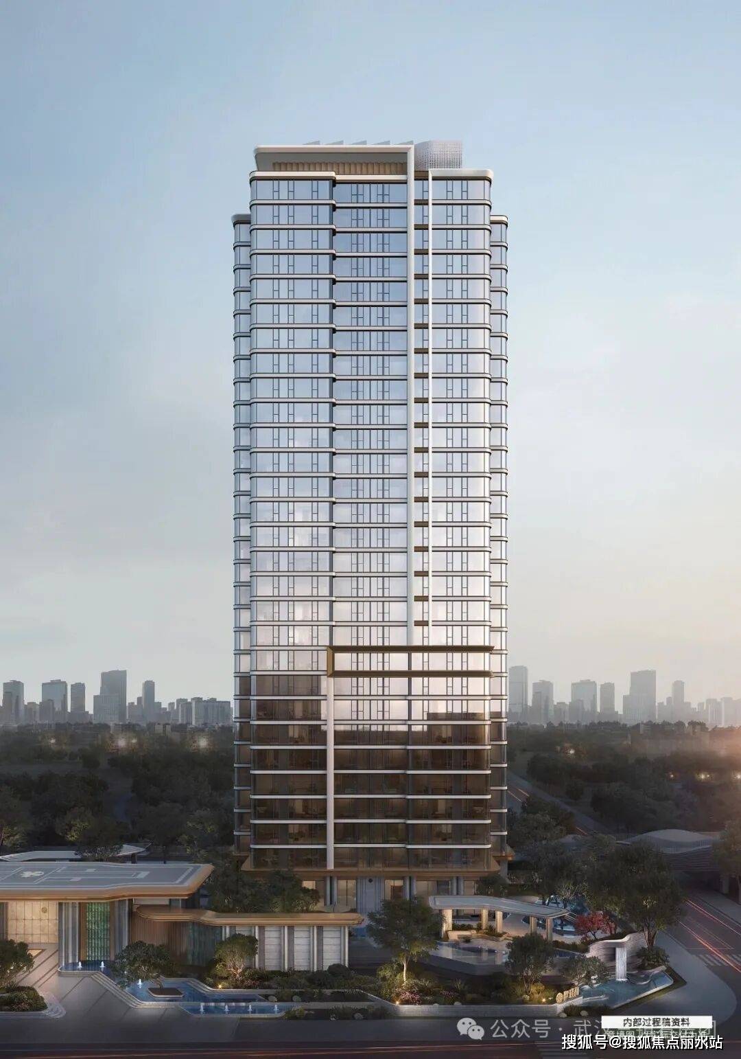 长约100米双层酒店式艺术大门,点亮滨江。中轴对称的形制,营造尊贵的归家礼序。