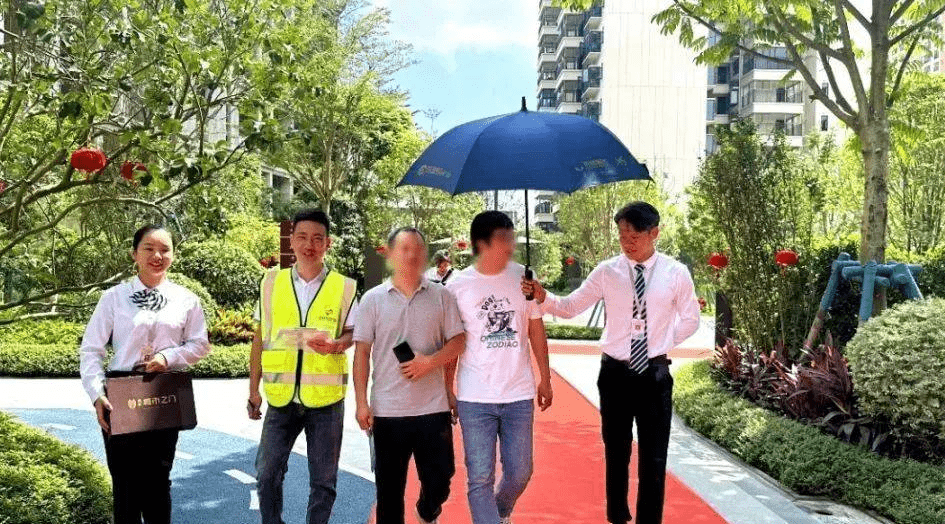 当天,盛世春江“盛装”以待,红灯笼、红毯、花柱一路延伸到小区内,工作人员一路笑脸相迎。