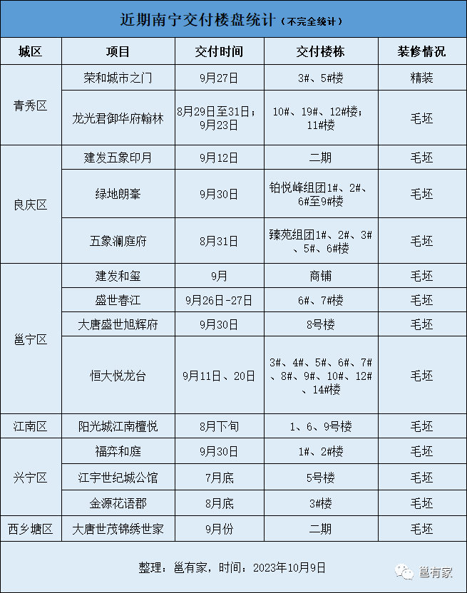 值得一提的是,在这批交付楼盘中,有一些是南宁保交楼项目,在经历了停工、复工后,迎来了令人喜悦的交付时刻,总之能交房是好事。