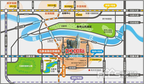 DK国际位于蟠龙片区,五象商务区核 心区金融总部基地头 排,近观邕江远眺青秀山,享五象商务核 心区约4万㎡南北双市政广场;门前1万㎡园林,仿若私家下榻绿地。项目南接五象大道,东接歌韵路、北临龙佑街,西靠飞龙路;南宁大桥、五象大桥近在咫尺,路网完善,快速通达琅东、凤岭、东盟商务区核 心商圈;地铁4号线号地铁线黄金交汇处,周边配套规格高,配置全面,学校、医疗、商业、文化机构一应无忧。五象中 央广场、总部金融街、滨江公园、五象湖、“三街八馆”等塔尖配套环伺,可谓占据了五象总部基地核 心地段,将成为南宁活力中 心的核 心商圈之一,形成“黄金商业带”!