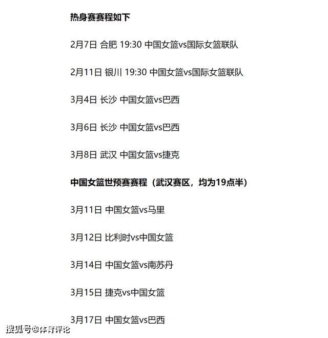 是的,中国女篮国家队的赛事又将开始了,从今天开始一直到3月17日,38天的时间里,中国队已经确定要打5场热身赛,以及5场世预赛。加油,无畏金兰的铿锵玫瑰。